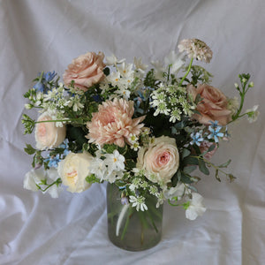 We have vases ready for you to finish with your favorite floral stems. Our designers get your vase started with a beautiful base of greenery and you select your floral stems to finish!
